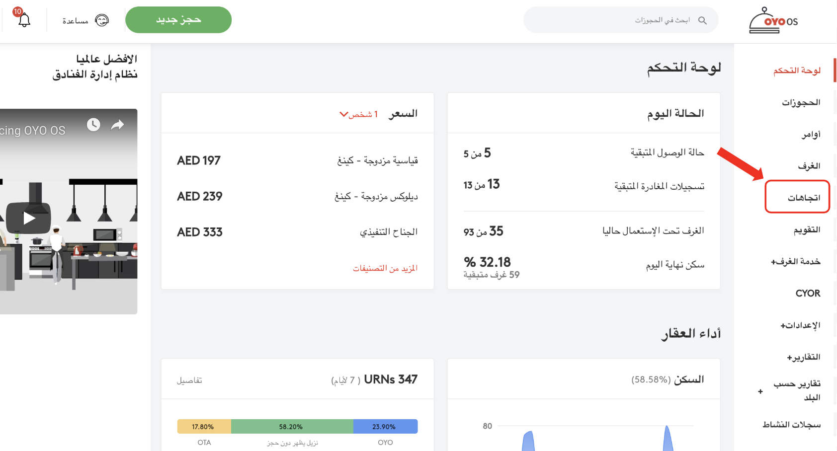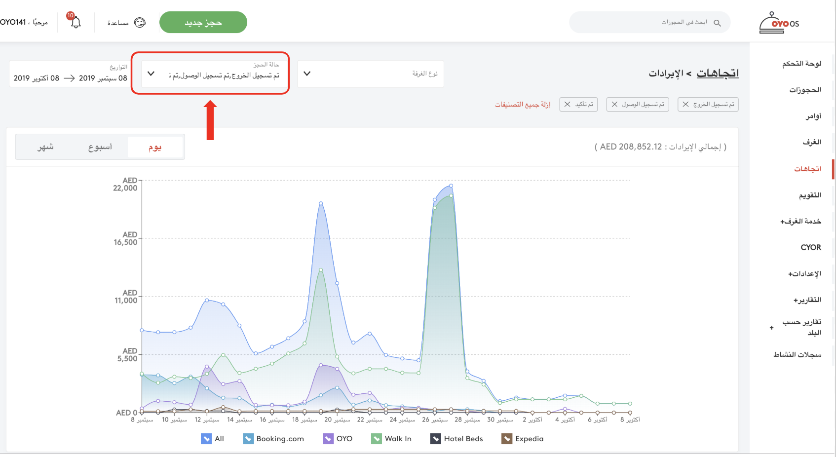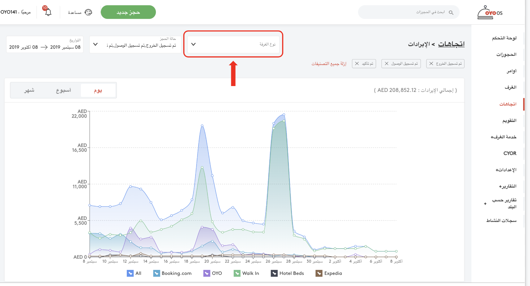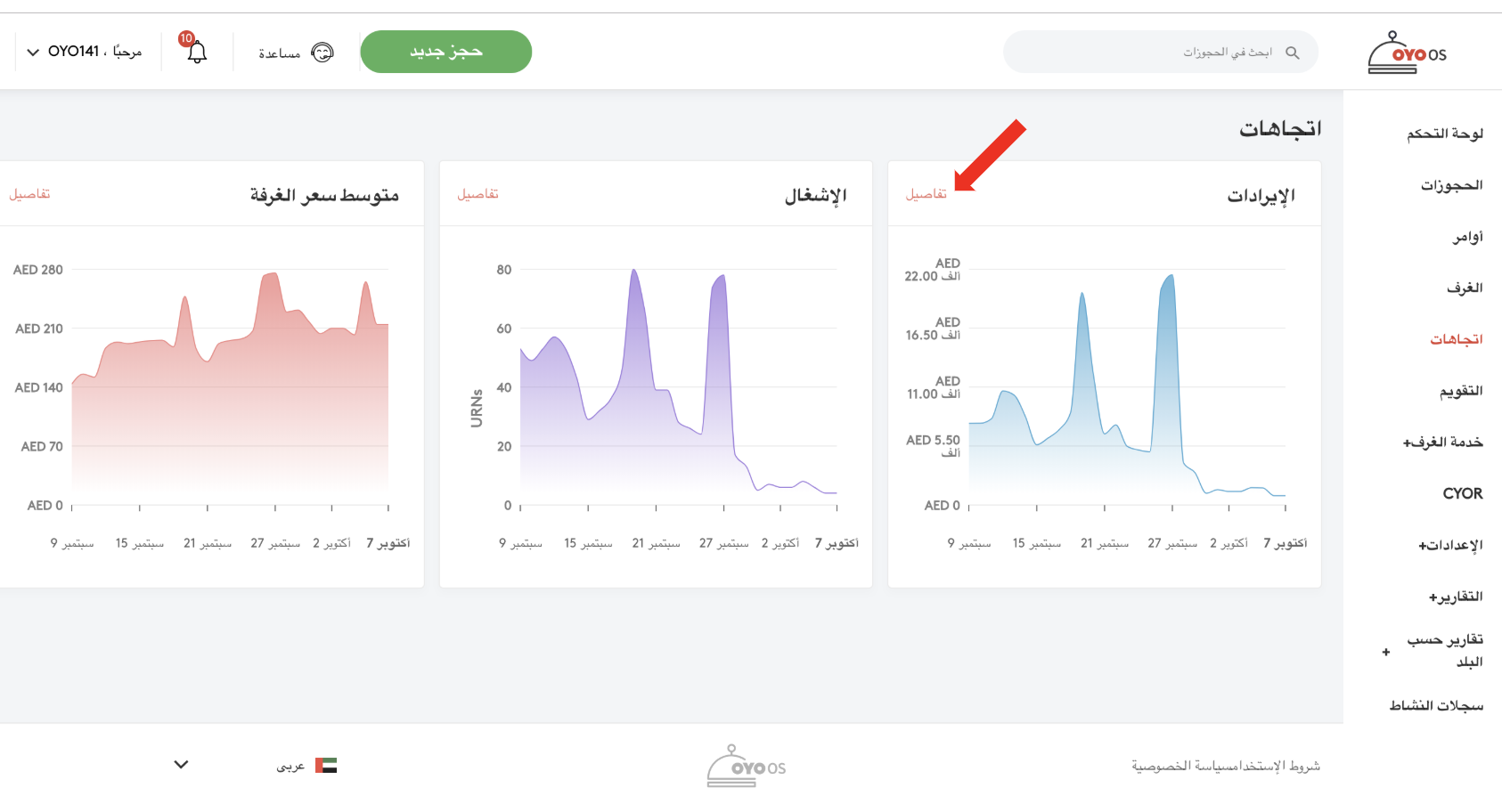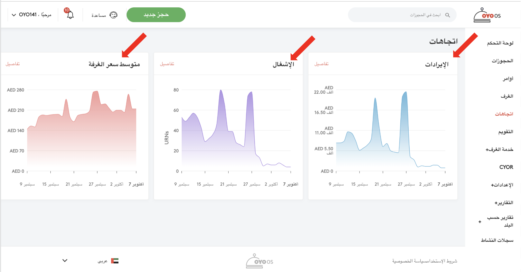 يمكن لمدير العقار الآن تحليل معدل الإيرادات والإشغال ومعدل الغرفة في شكل رسوم بيانية على نظام OYO OS، وستوفر هذه الميزة رؤية أفضل لمقاييس العمل الخاصة بممتلكاتهم.