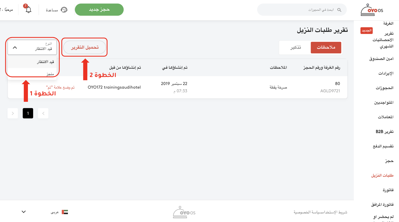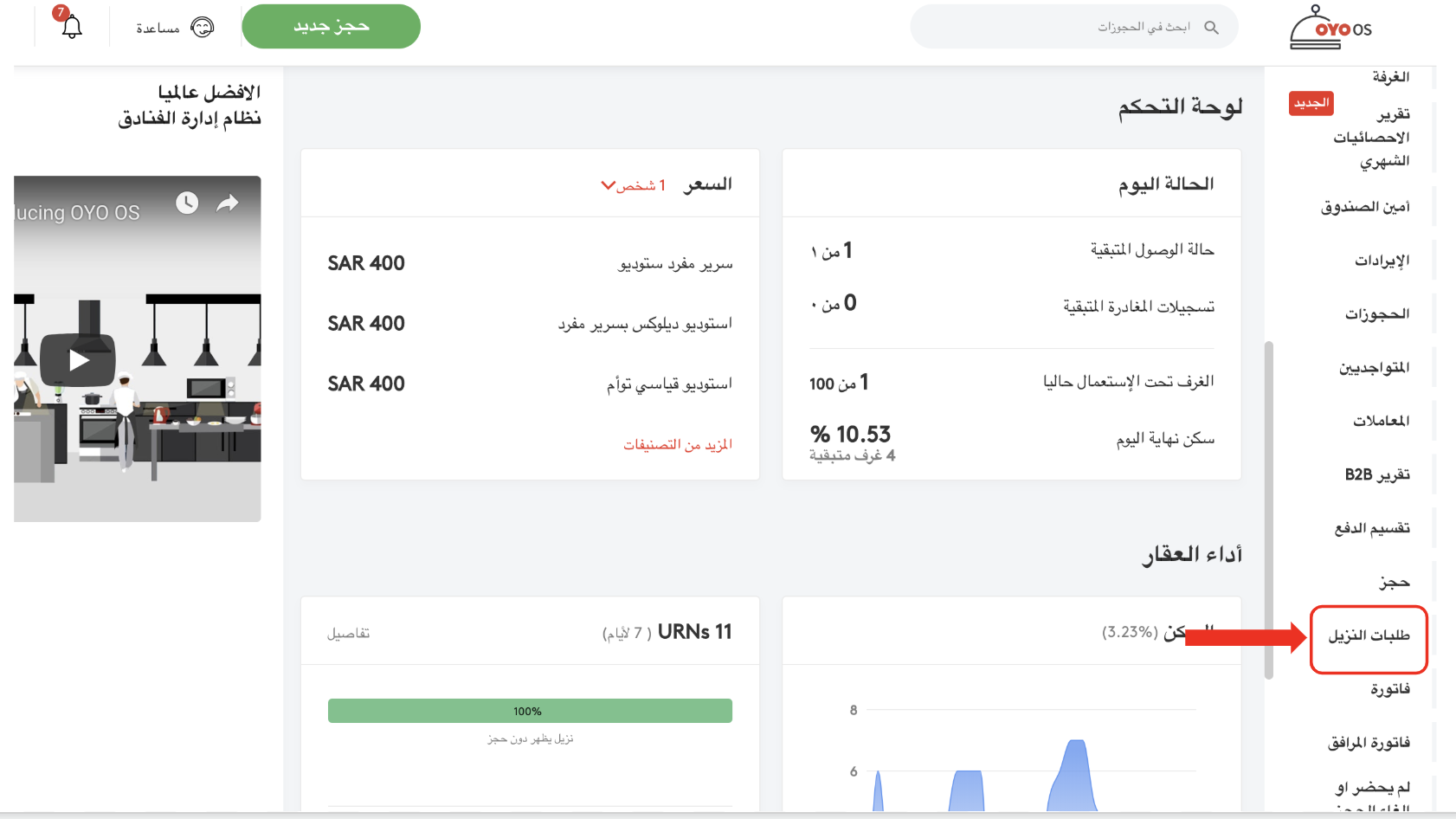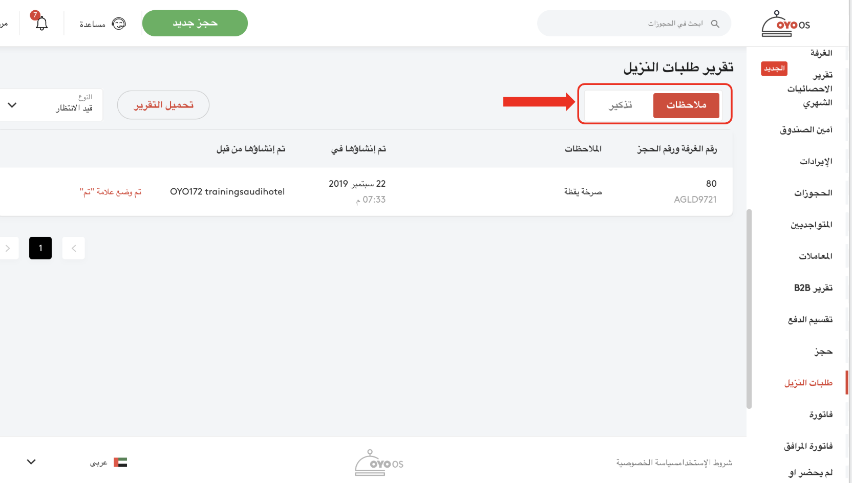 الخطوة 2: بعد النقر على زر التقارير ، سيكشف قسم التقارير المزيد من الخيارات، ومنها انقر على طلبات النزلاء.