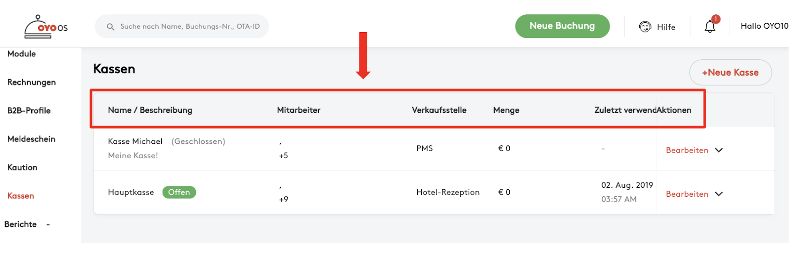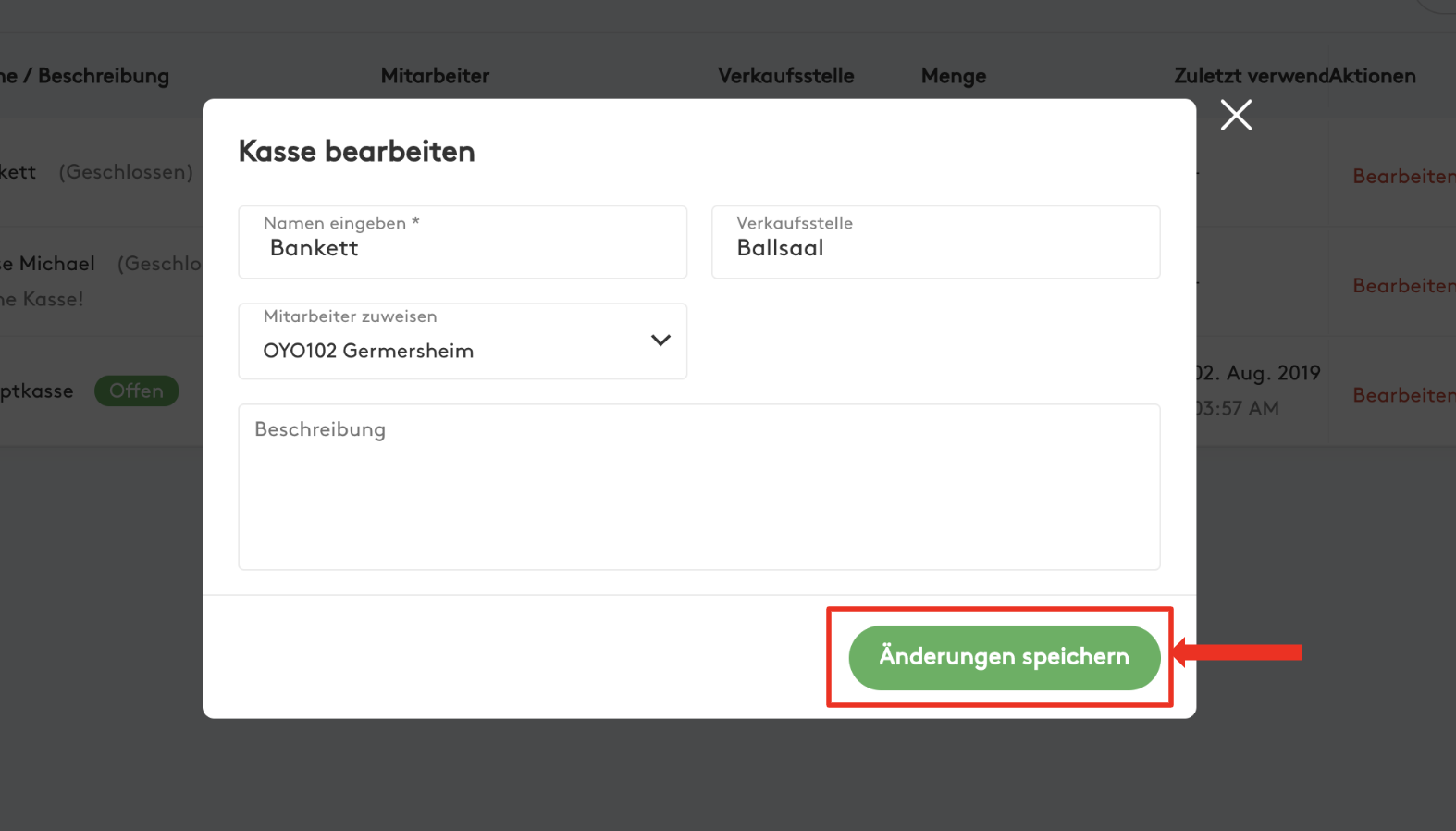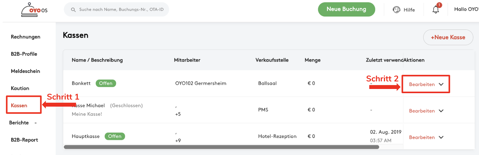 II) Wählen Sie eine Kasse aus, die Sie bearbeiten möchten, und klicken Sie auf „Bearbeiten“.