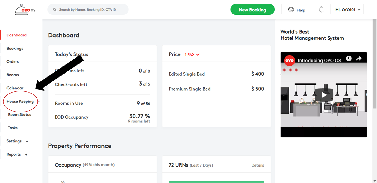 STEP 1: From the list of tabs on the left hand of the screen, click on Housekeeping