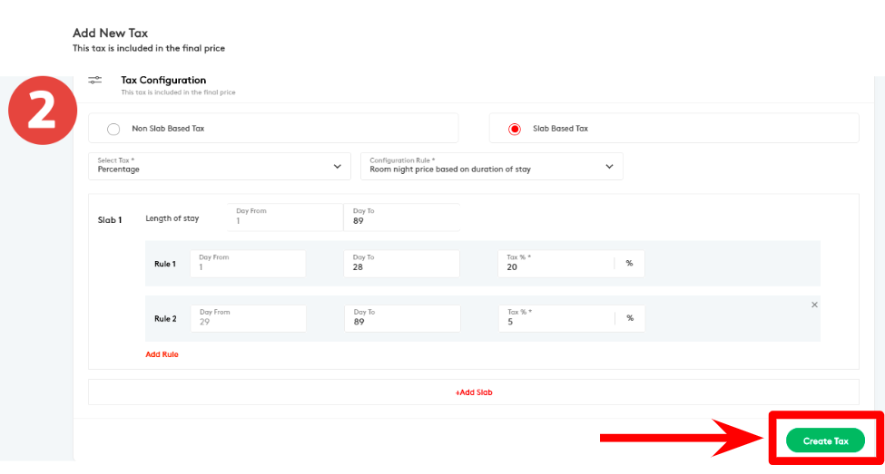 The property manager can configure taxes based on duration of stay of bookings for their properties.