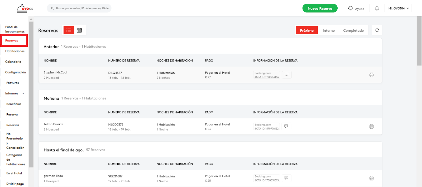 Dentro de las reservas, pulsa sobre la que queramos cambiar
