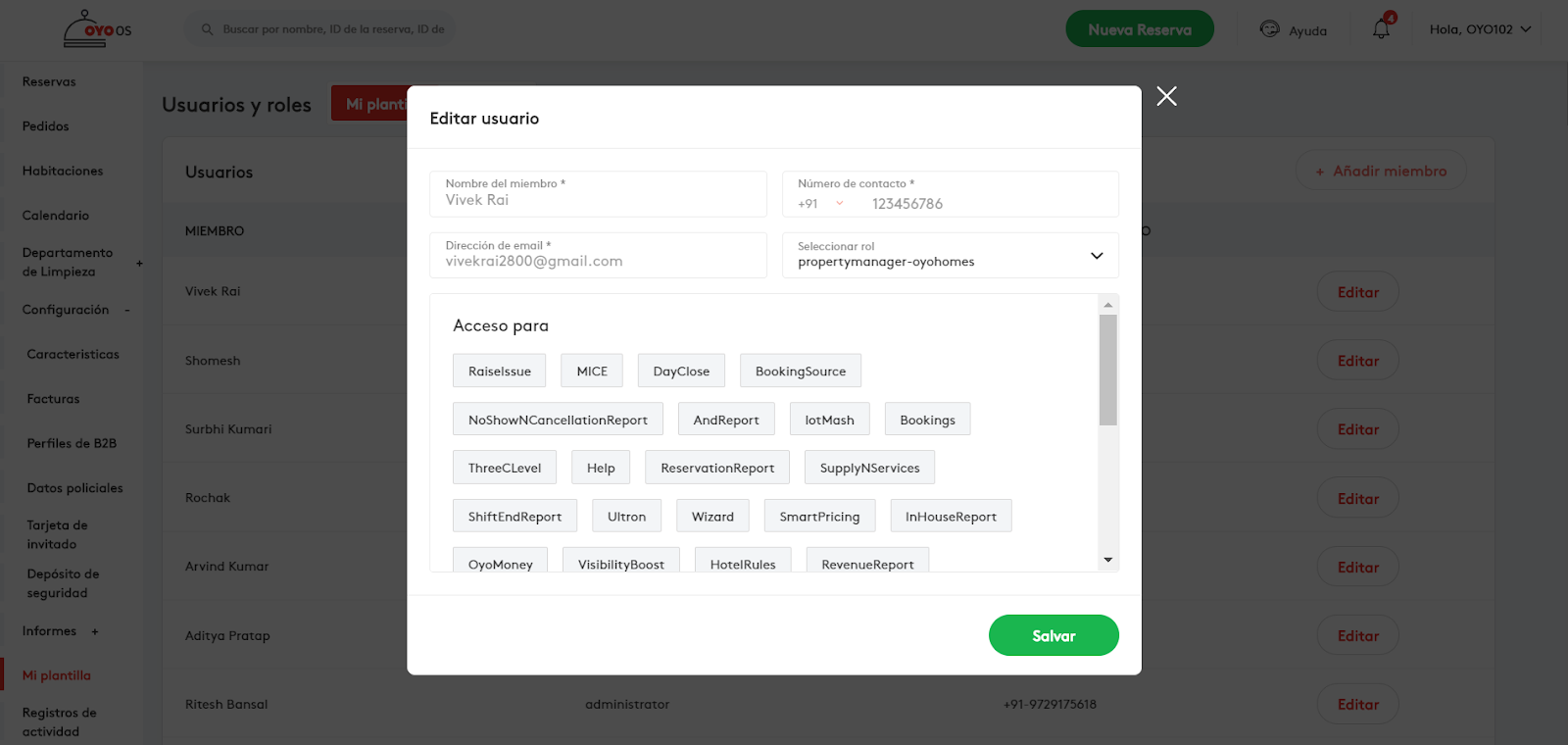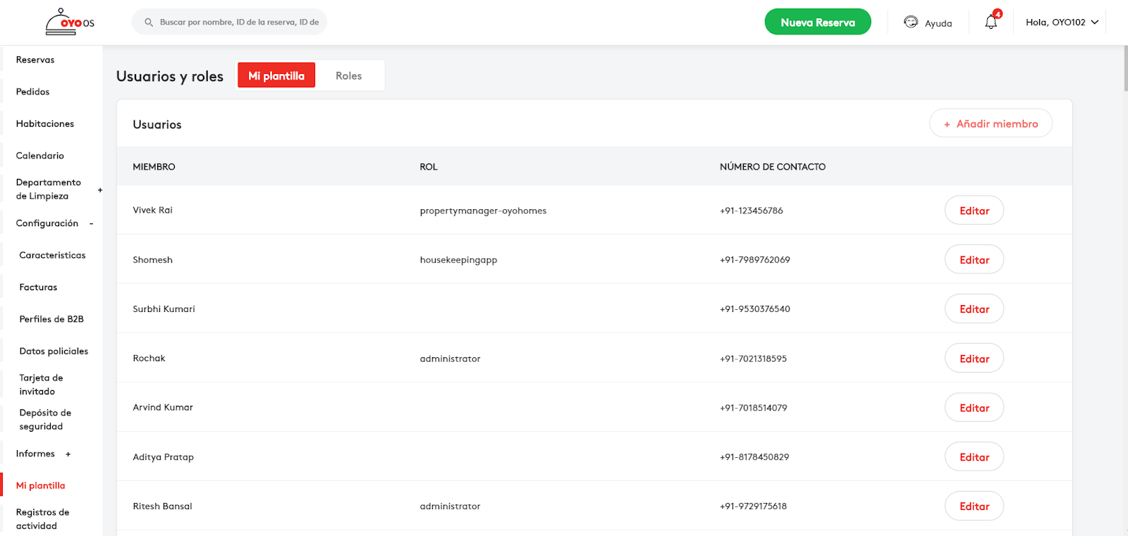Las funciones del personal con acceso a la función de administración de personal pueden seguir los pasos a continuación para actualizar un perfil de personal existente en OYO OS.