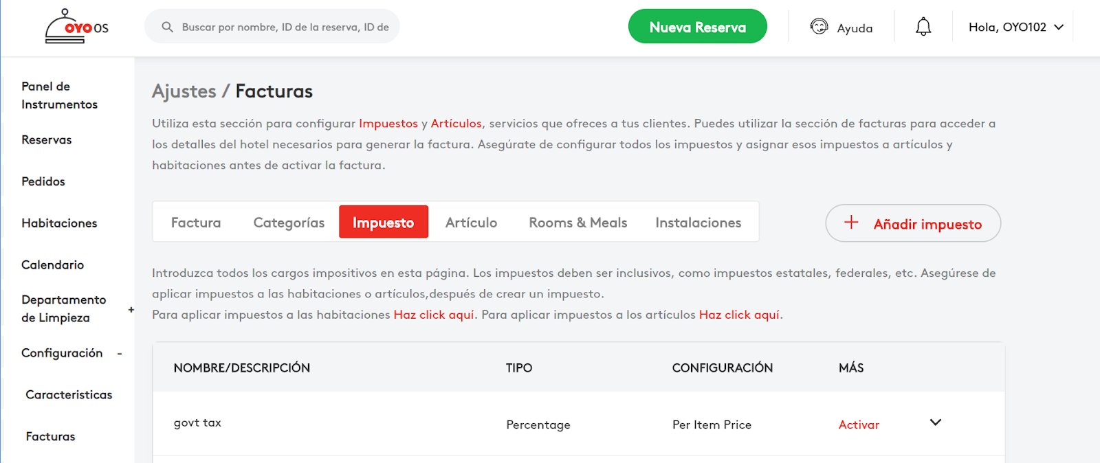 Se debe seguir el siguiente proceso para agregar / editar las configuraciones de impuestos: