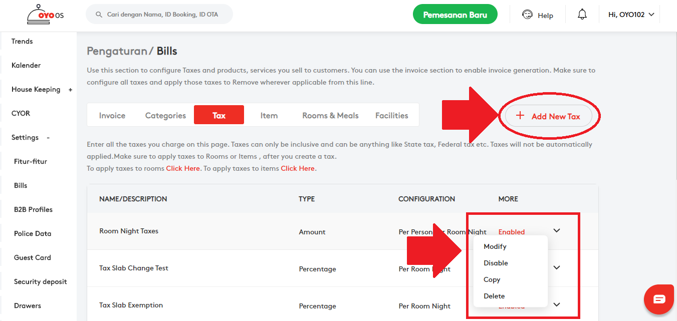 Langkah 3: Klik ‘Add New Tax’ untuk mengkonfigurasi pajak baru atau arahkan kartu pajak sebelumnya dan klik ‘modify’ untuk memperbarui yang sama.