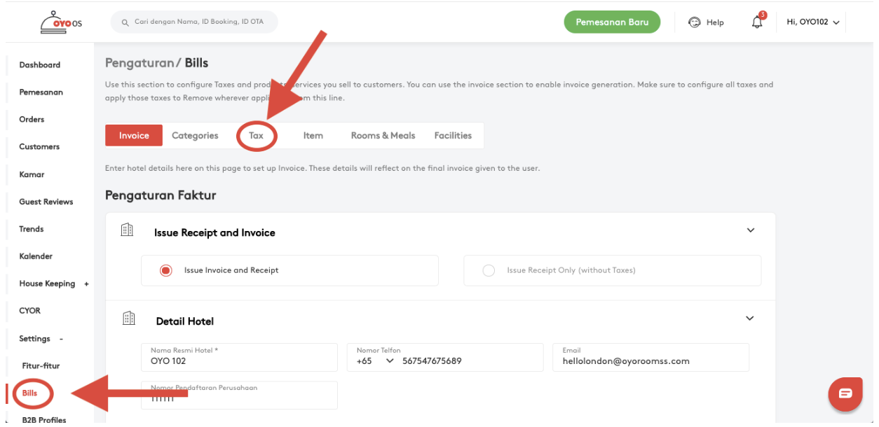 Langkah 2: Klik ‘Bills’ di bawah menu settings, lalu klik tombol ‘Tax’
