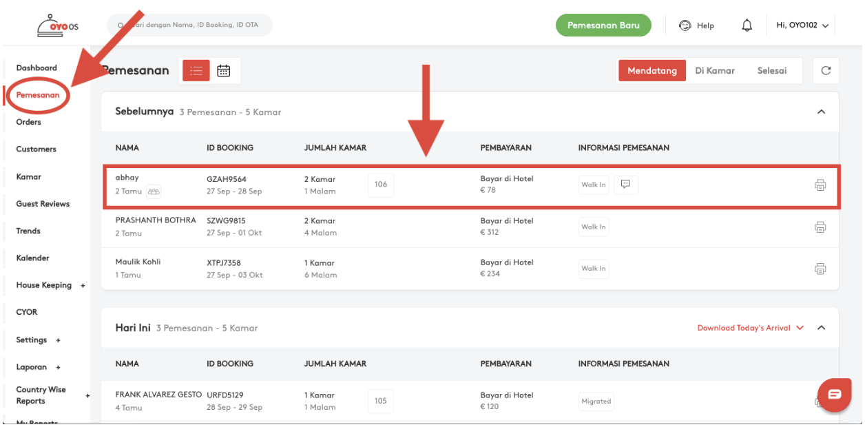Langkah 1: Dari tab Pemesanan, klik pemesanan yang perlu ditambahkan tagihan.