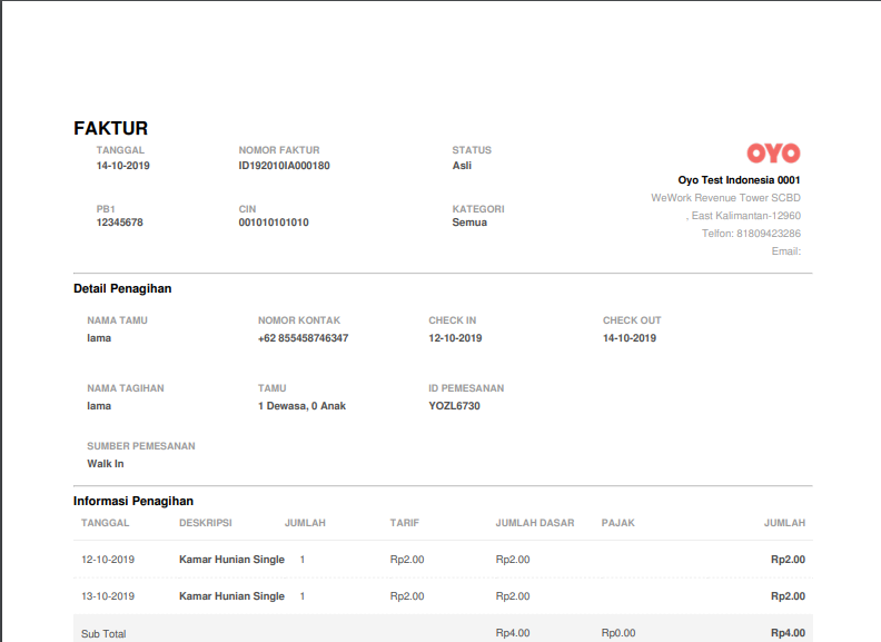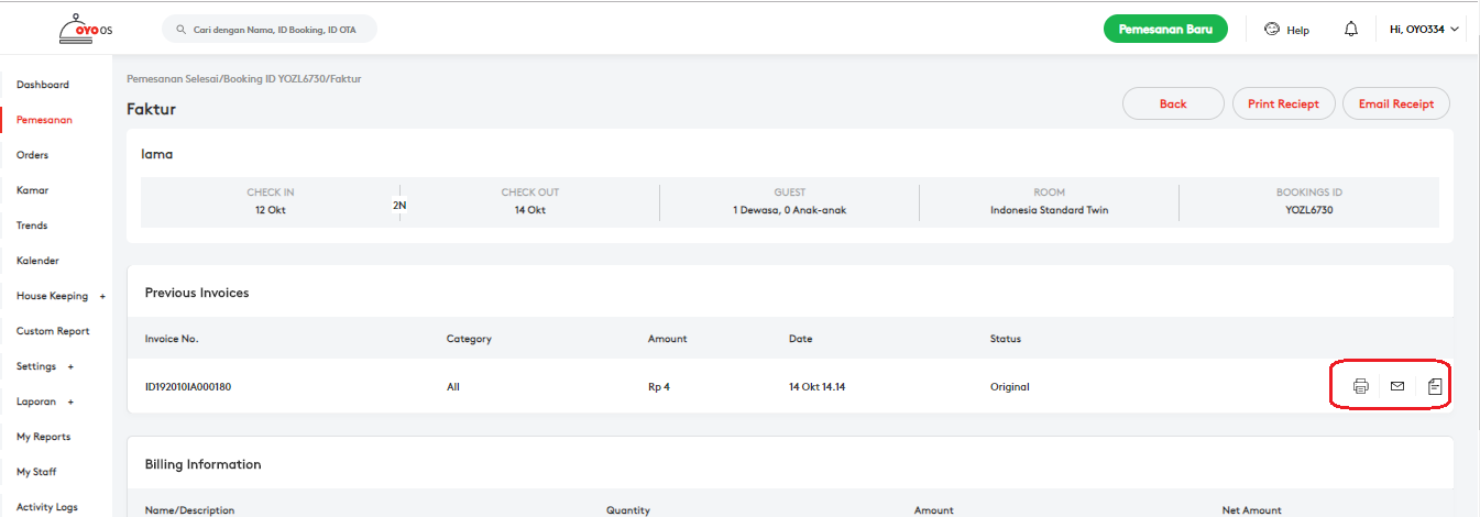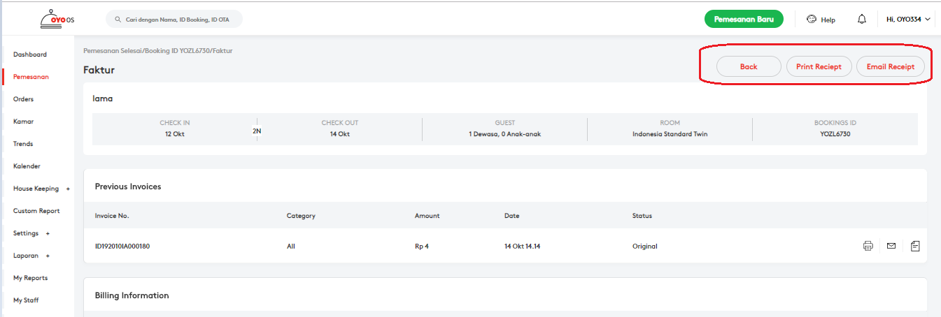 Selain Faktur, OYO OS juga dapat mengeluarkan Resi atau Payment Receipt. Berikut ini adalah langkah-langkahnya: