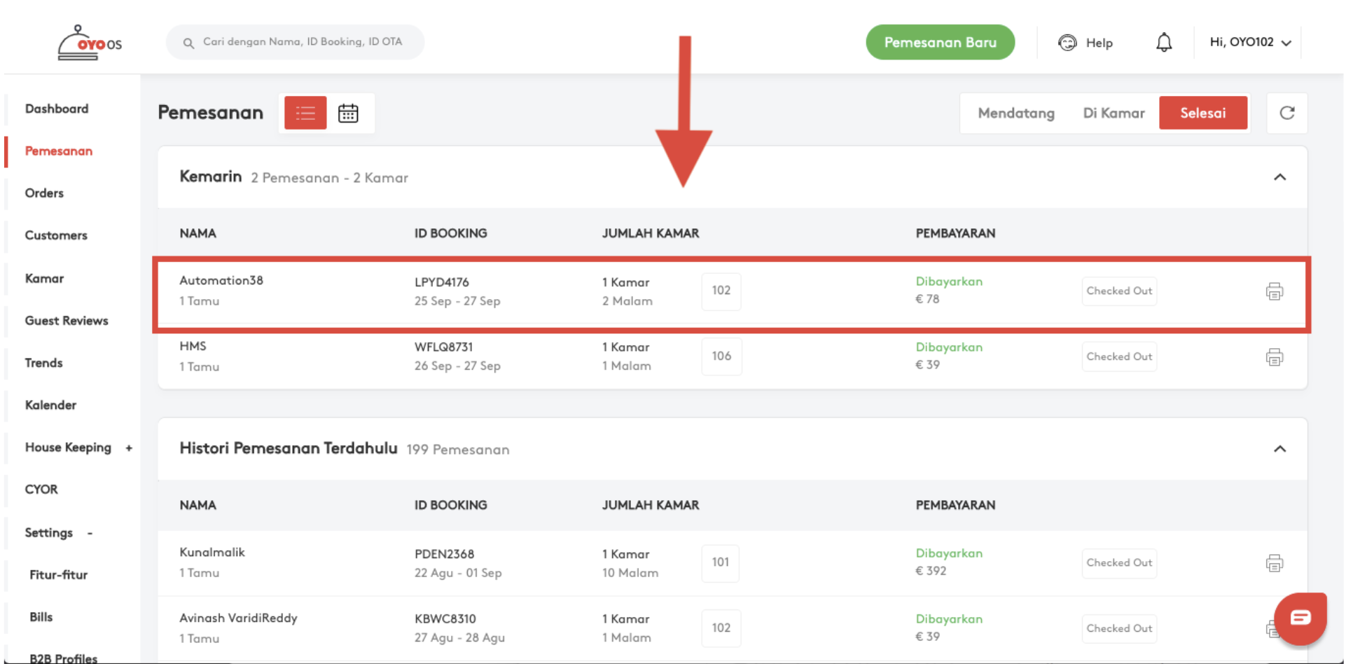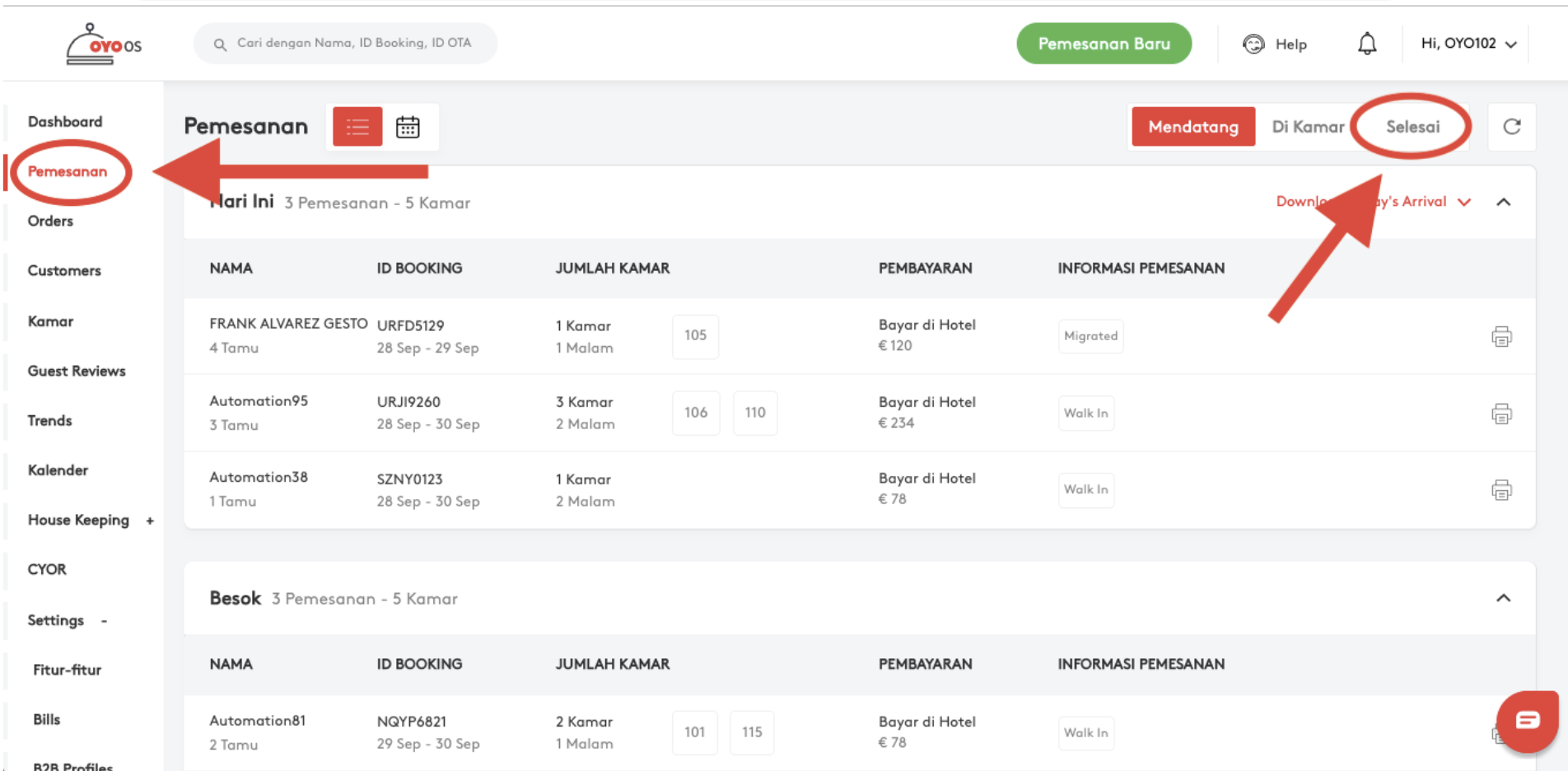 Langkah 1: Klik menu Pemesanan, lalu klik tombol Selesai
