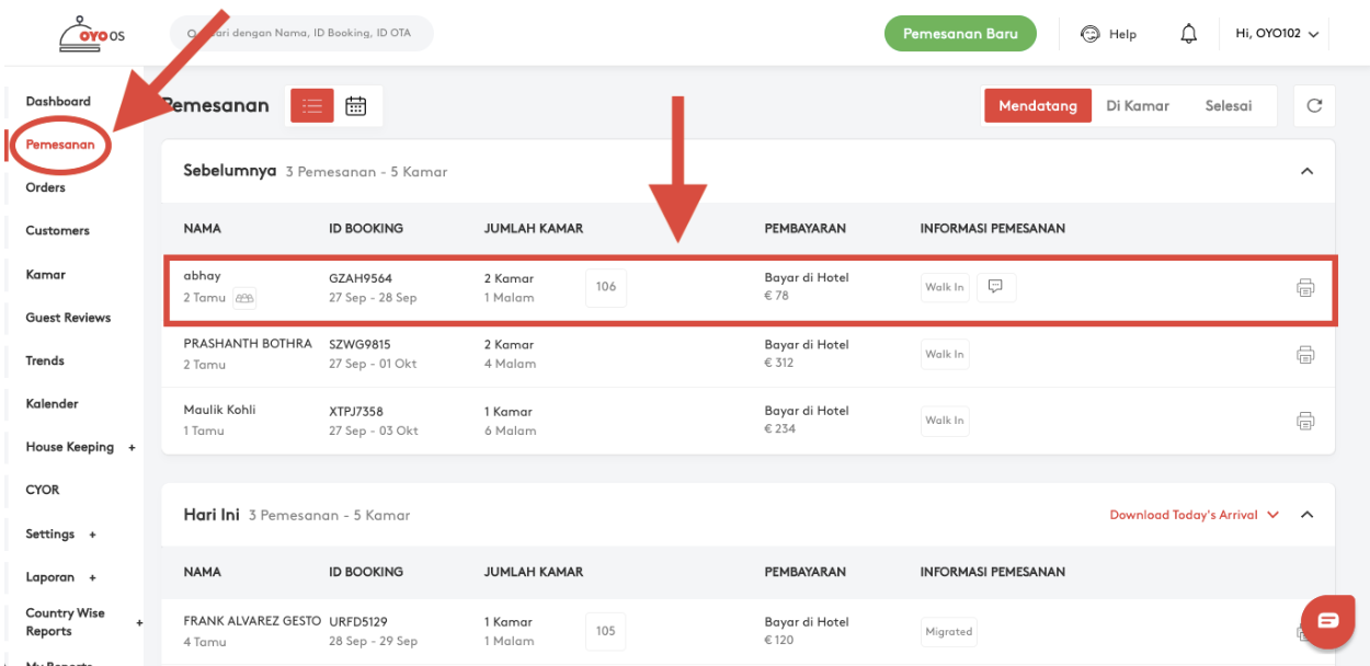 Langkah 1: Dari tab pemesanan, klik pemesanan yang tagihannya perlu dihapus.