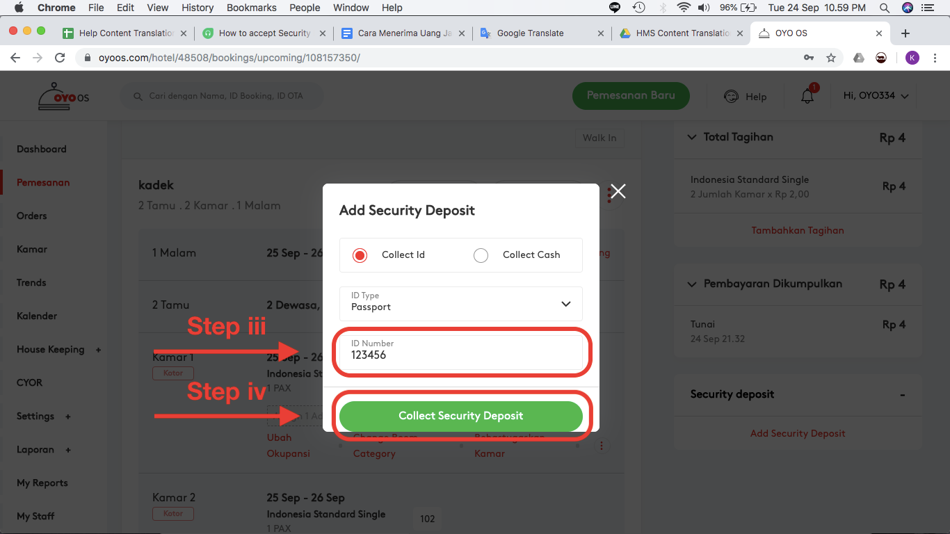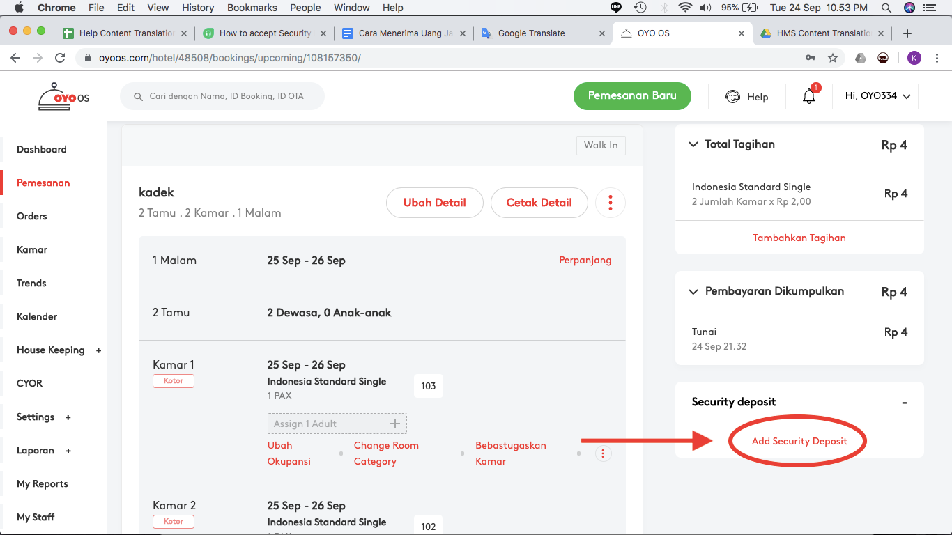 Ikuti langkah-langkah di bawah ini untuk menambahkan uang jaminan pada OYO OS:
