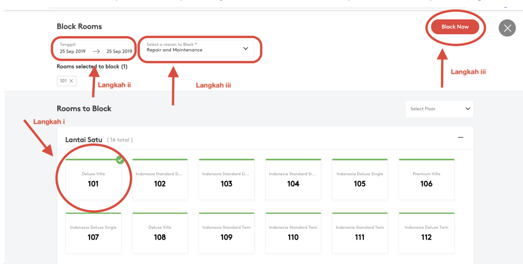 Sebuah kamar dapat diblokir dengan mengikuti langkah-langkah di bawah ini: