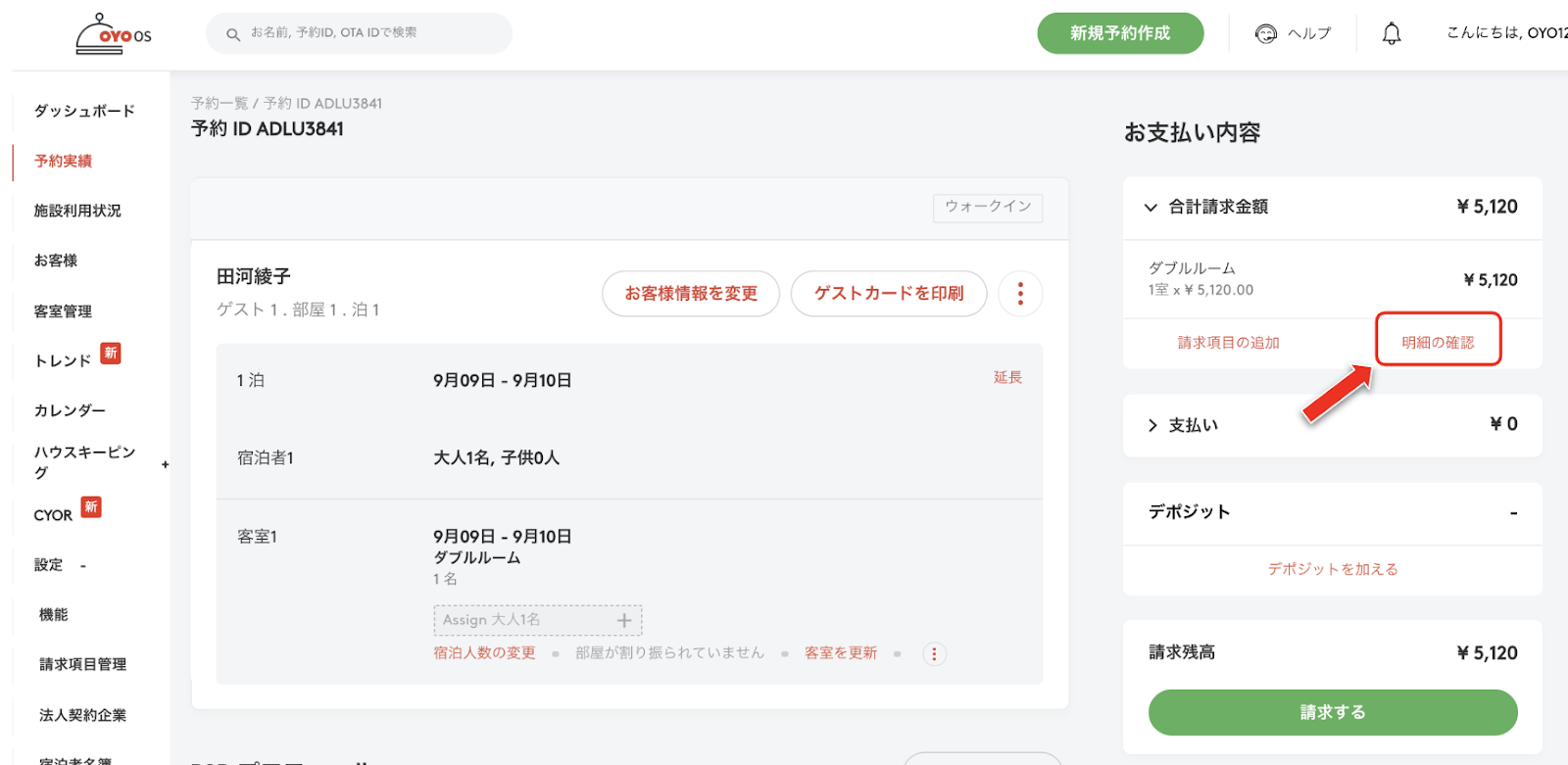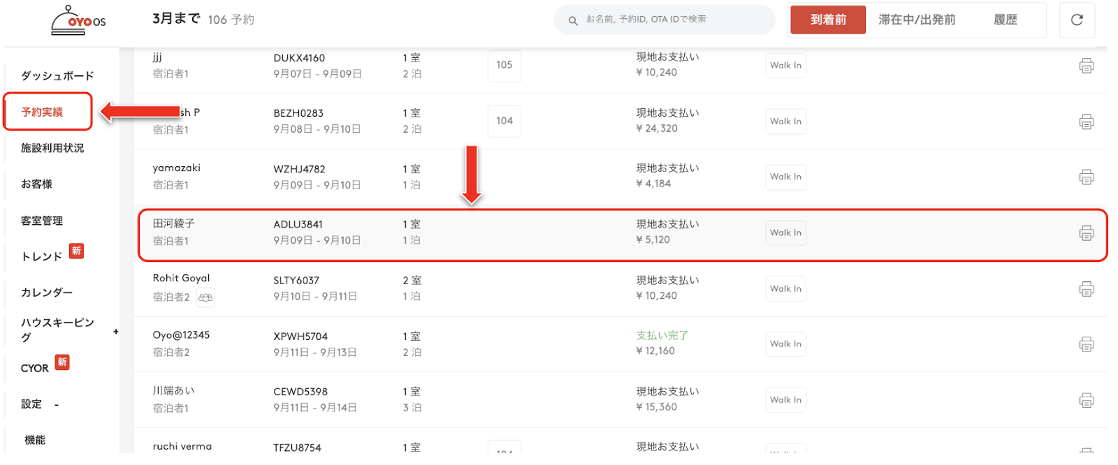 手順 1: Bookings のタブを開き、請求金額を削除したい予約内容をクリックします。