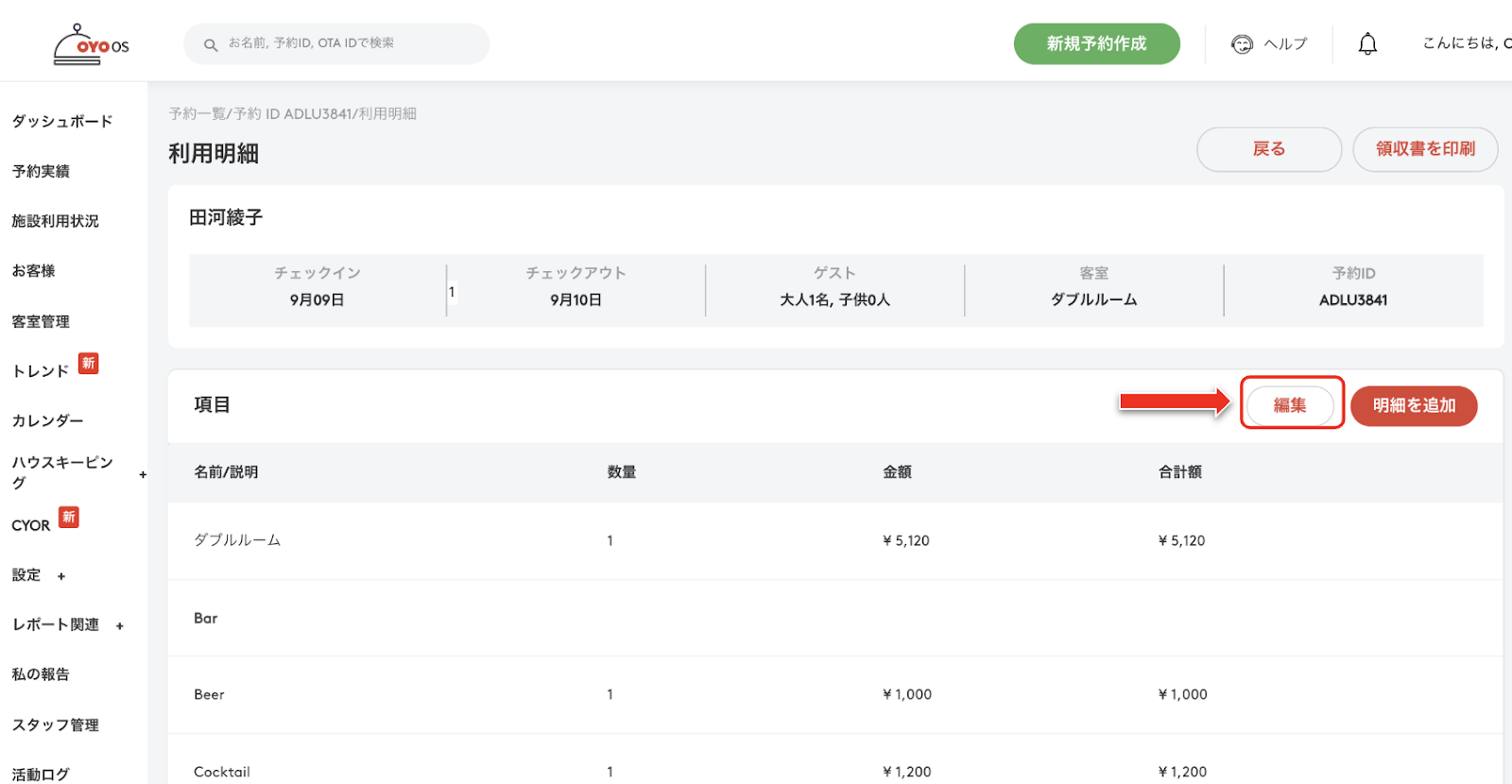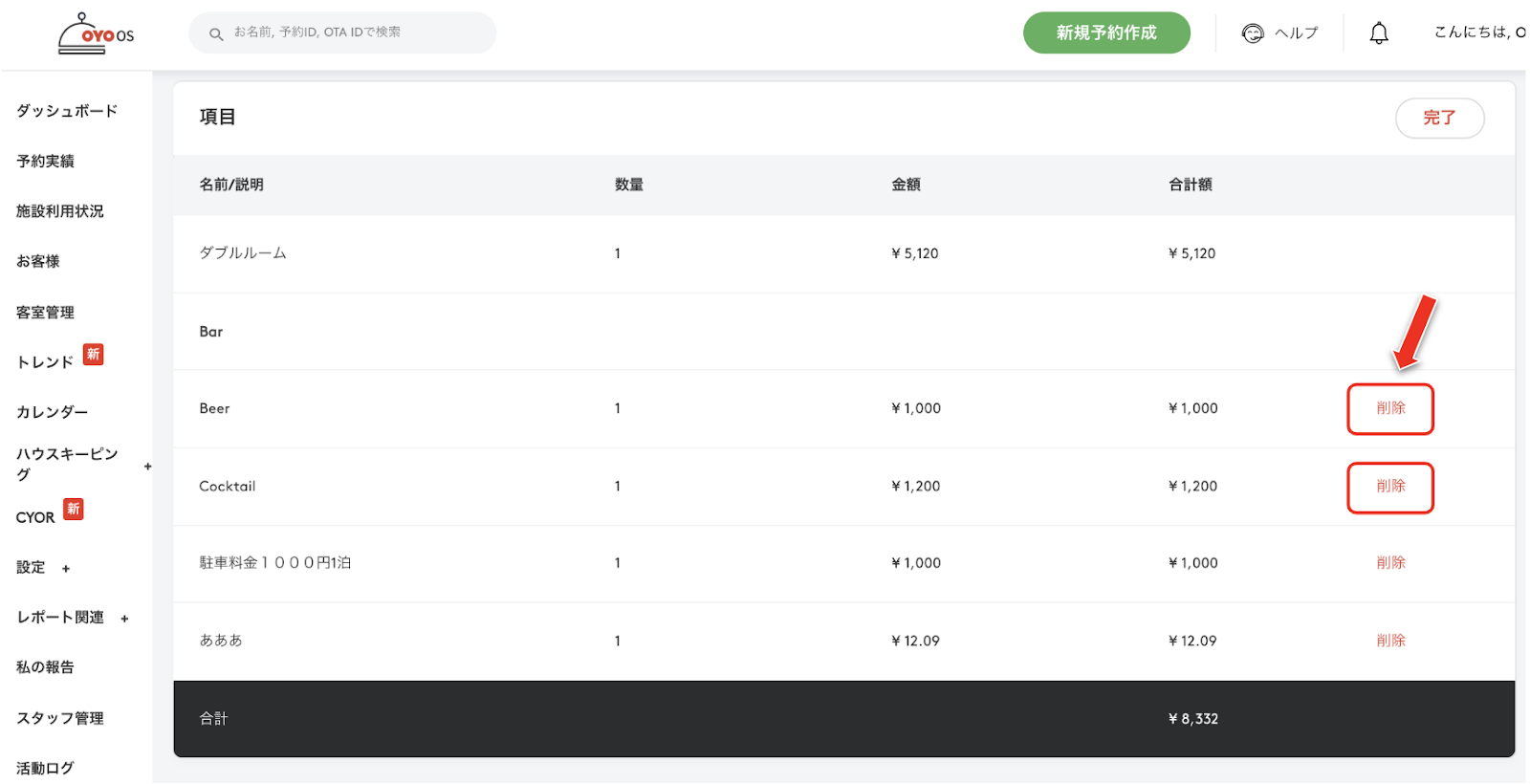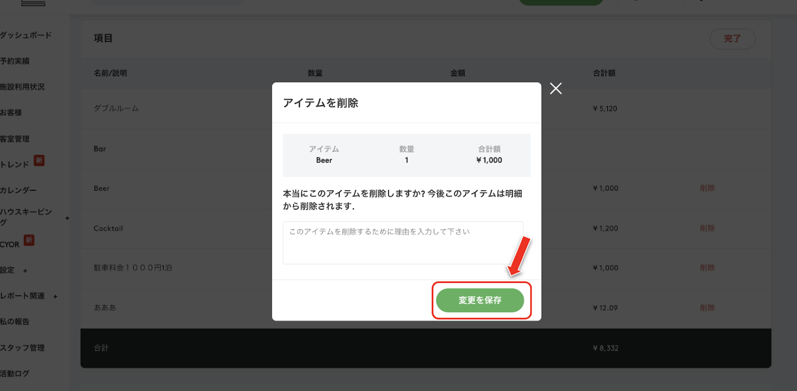 宿泊施設のマネージャーが予約に対する請求金額を削除する方法は以下の通りです: