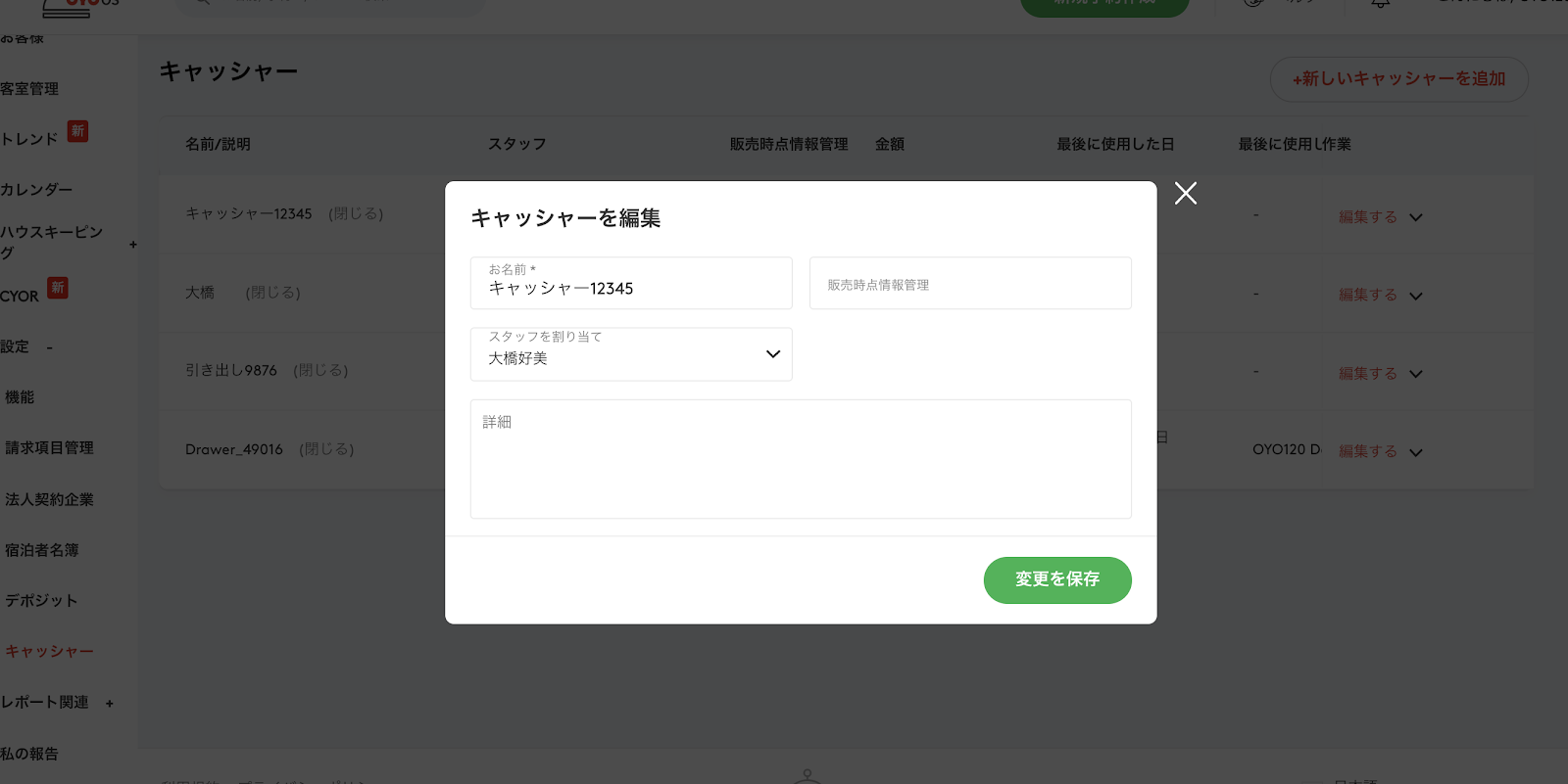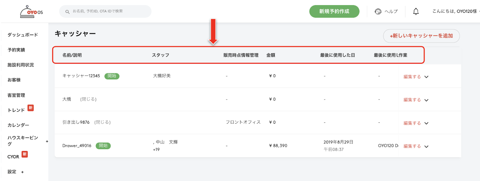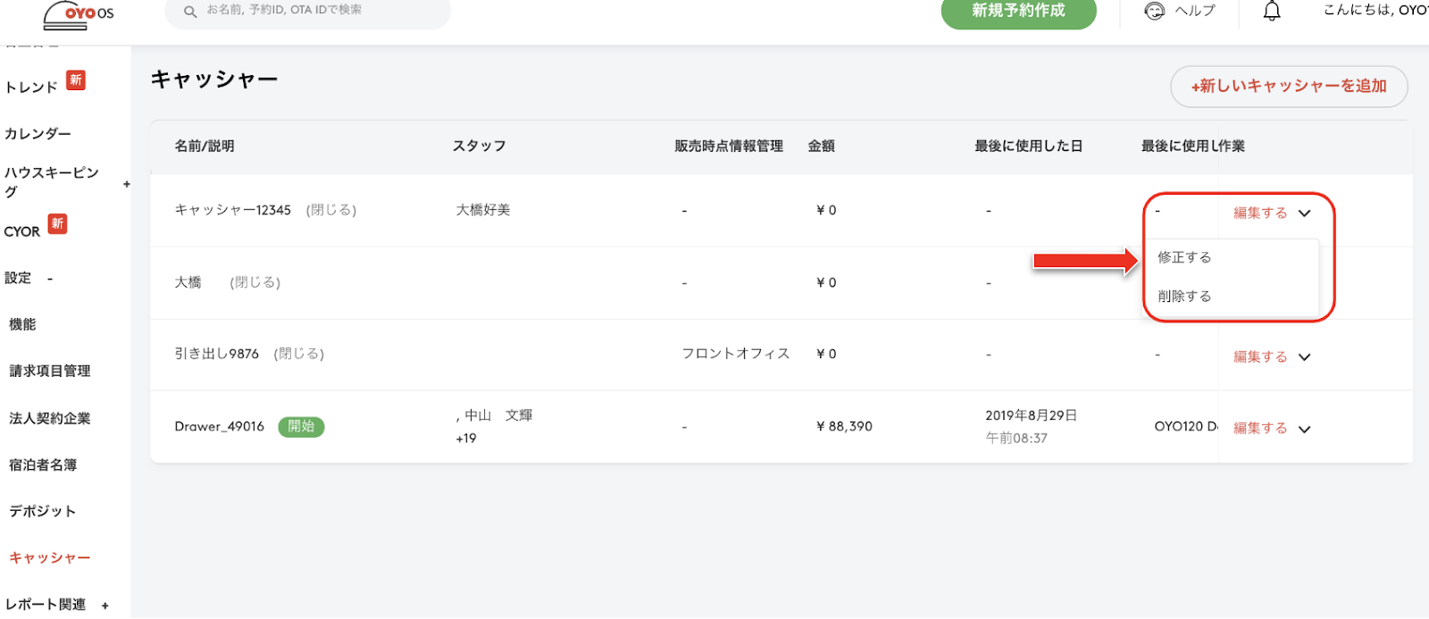 宿泊施設のマネージャーはPOSシステムとして仮想のキャッシュドロアーを複数管理できるようになりました。 POSシステムを使用するスタッフ一人一人にキャッシュドロアーが割り当てられます。OYO OS上に複数のキャッシュドロアーを登録することができ、既存のキャッシュドロアーの情報を編集することもできます。.