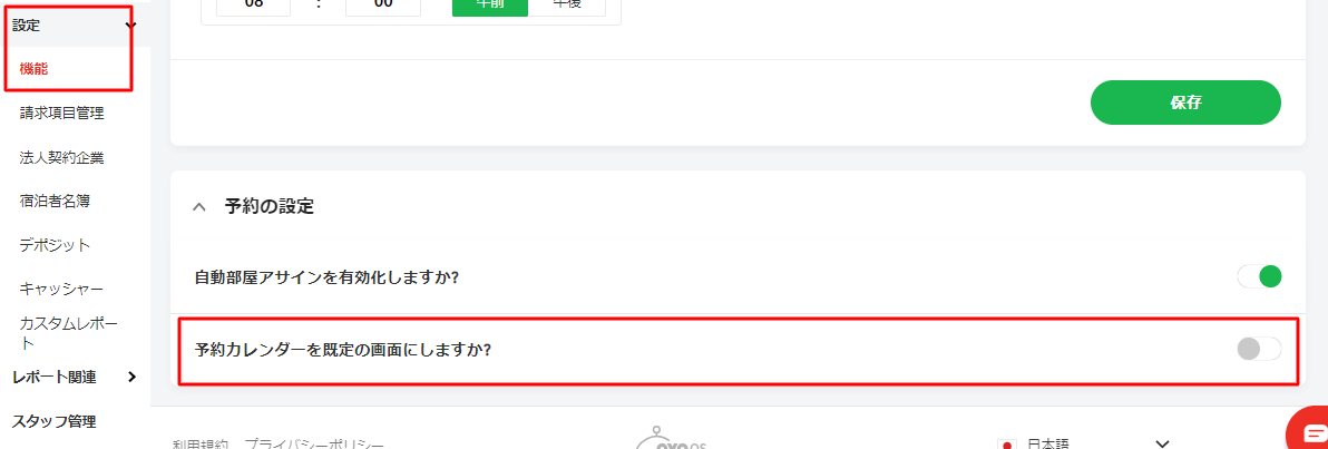 [予約カレンダーを既定の画面にしますか?]のオプションをONにしてください。
