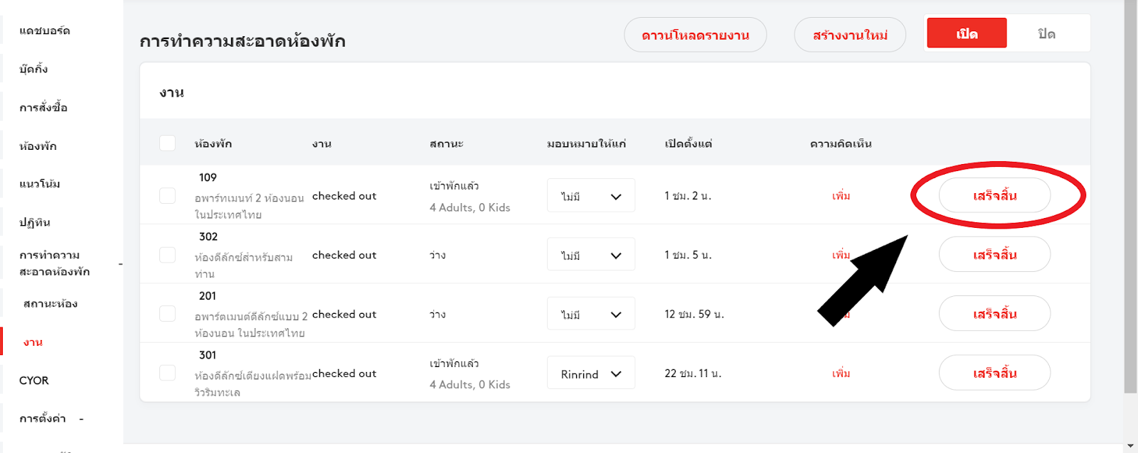 ขั้นตอนที่ 2: คลิกที่แท็บ งาน ภายใต้แท็บ การทำความสะอาดห้องพัก