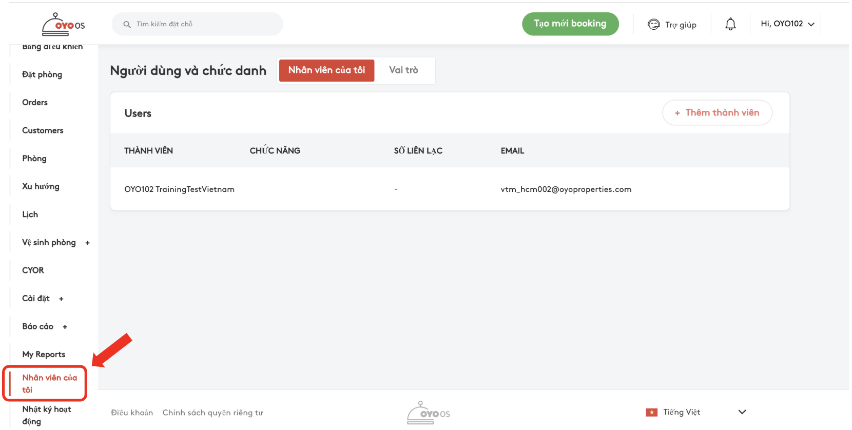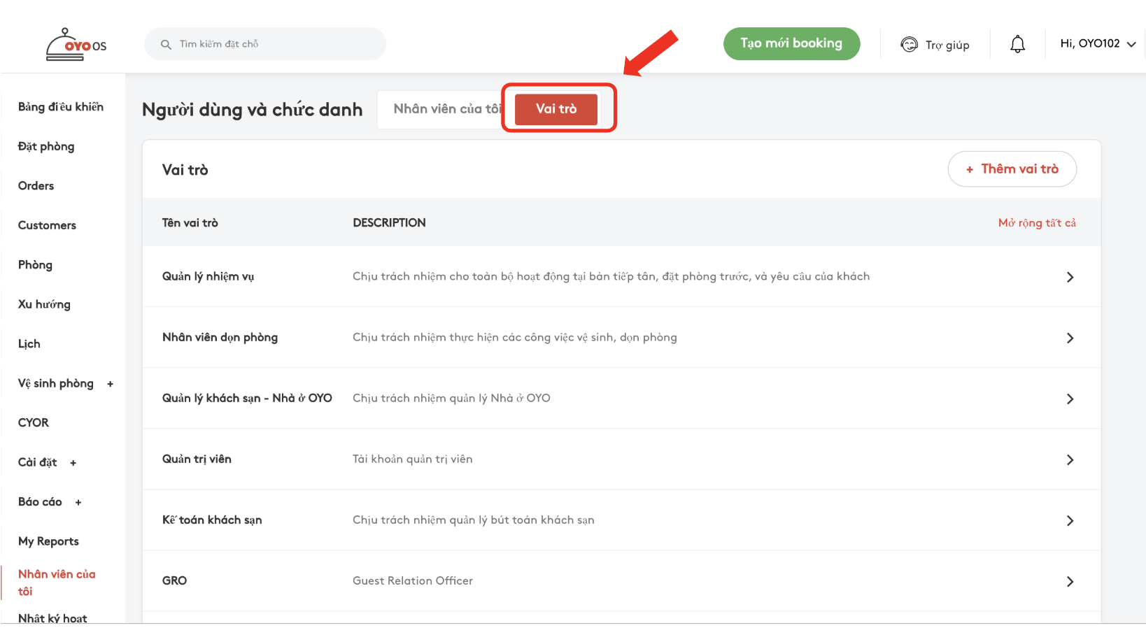Nhân viên được truy cập vào tính năng quản lý nhân viên, có thể làm theo các bước sau để kiểm tra các vai trò hiện có.