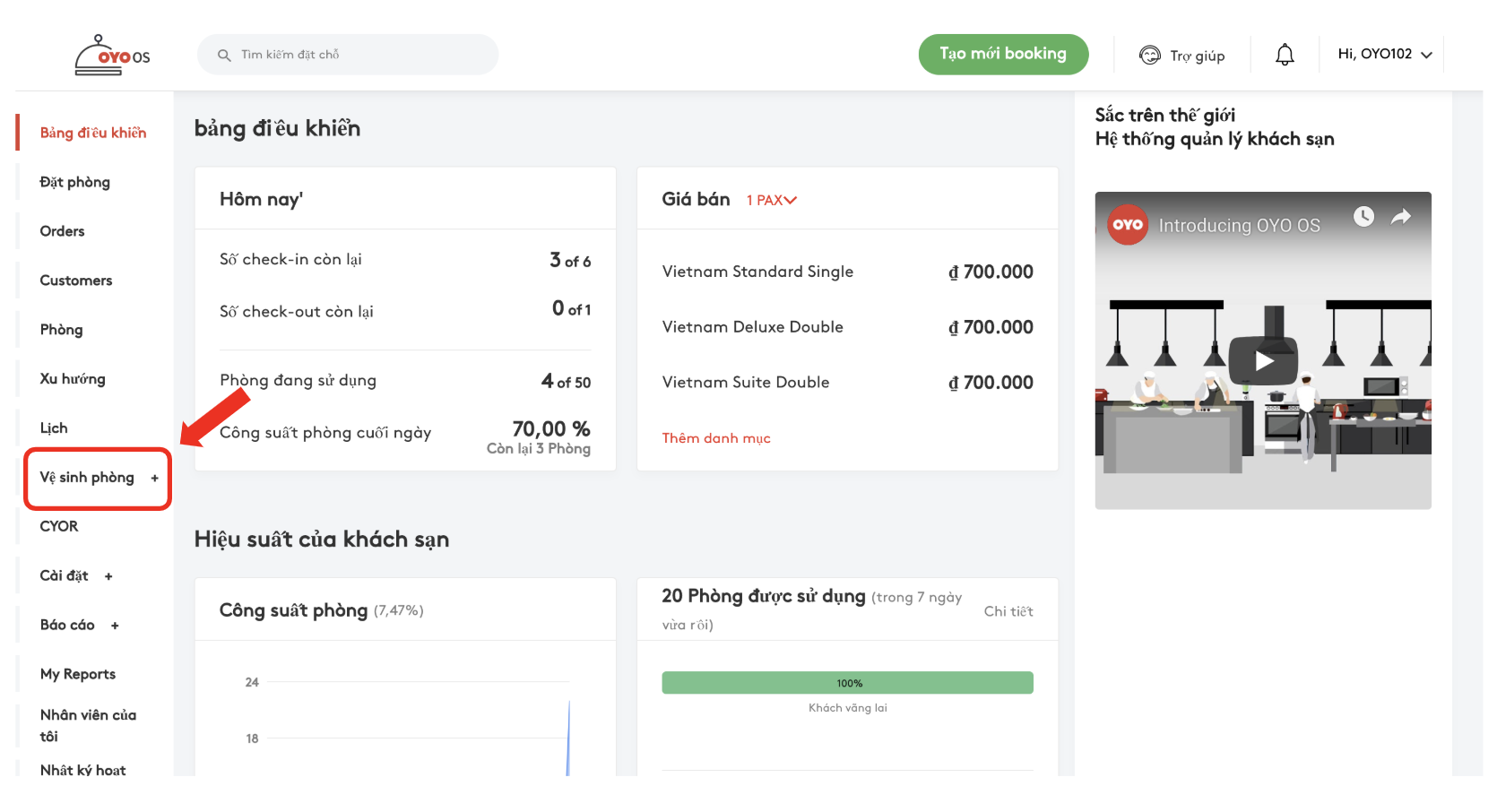 BUÓC 1: Từ các mục bên trái màn hình, nhấp chọn Vệ sinh(Housekeeping)