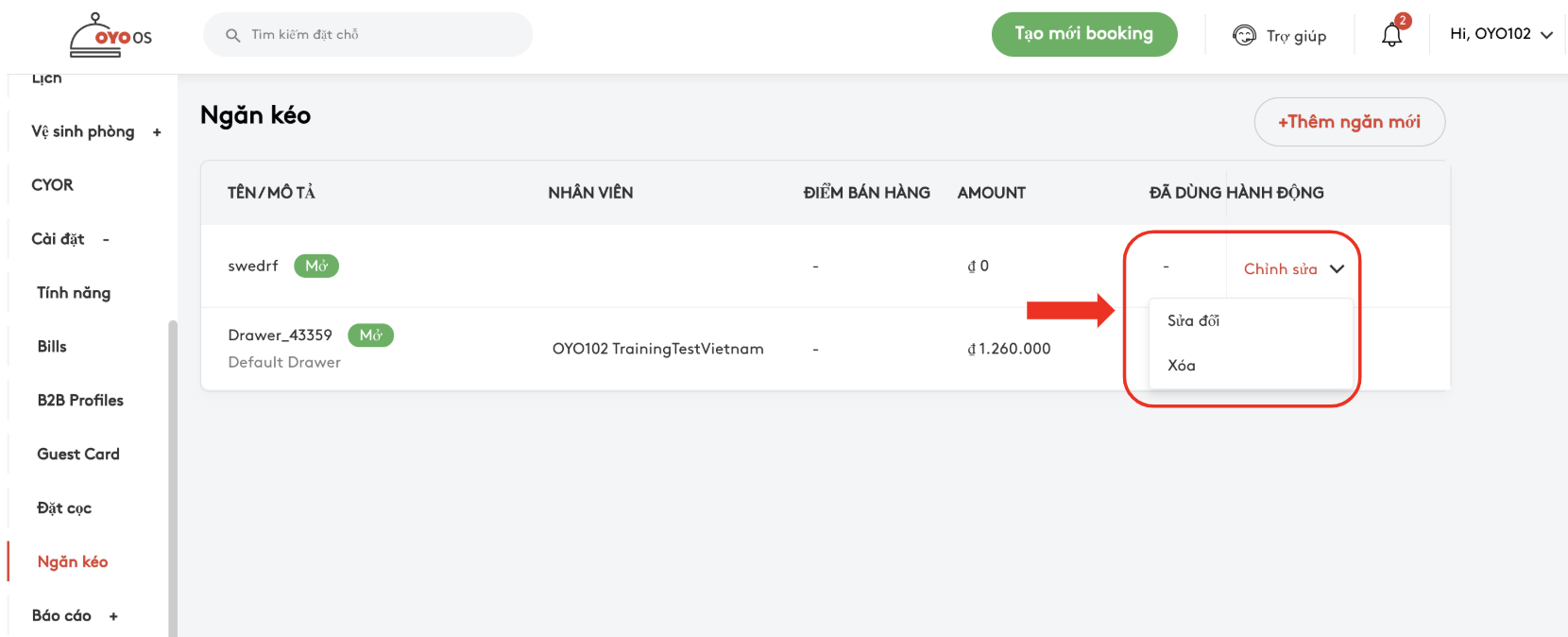 Quản lý khách sạn giờ đây có thể quản lý nhiều quầy thu ngân điện tử thuộc các điểm bán khác nhau. Quầy thu ngân cho phép quản lý khách sạn giao quỹ tiền mặt cho các nhân viên phụ trách ở mỗi điểm bán. OYO OS có thể tạo các quầy thu ngân mới và chỉnh sửa những quầy thu hiện tại. Quầy thu ngân giúp theo dõi những dữ liệu sau đây: